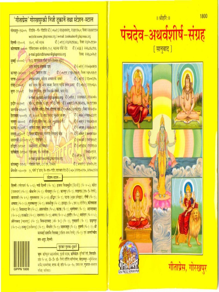 Panchdev Atharvashirsha Sangrah Gita Press Sanskrit Hindi Pdf Shiva Hindu Literature
