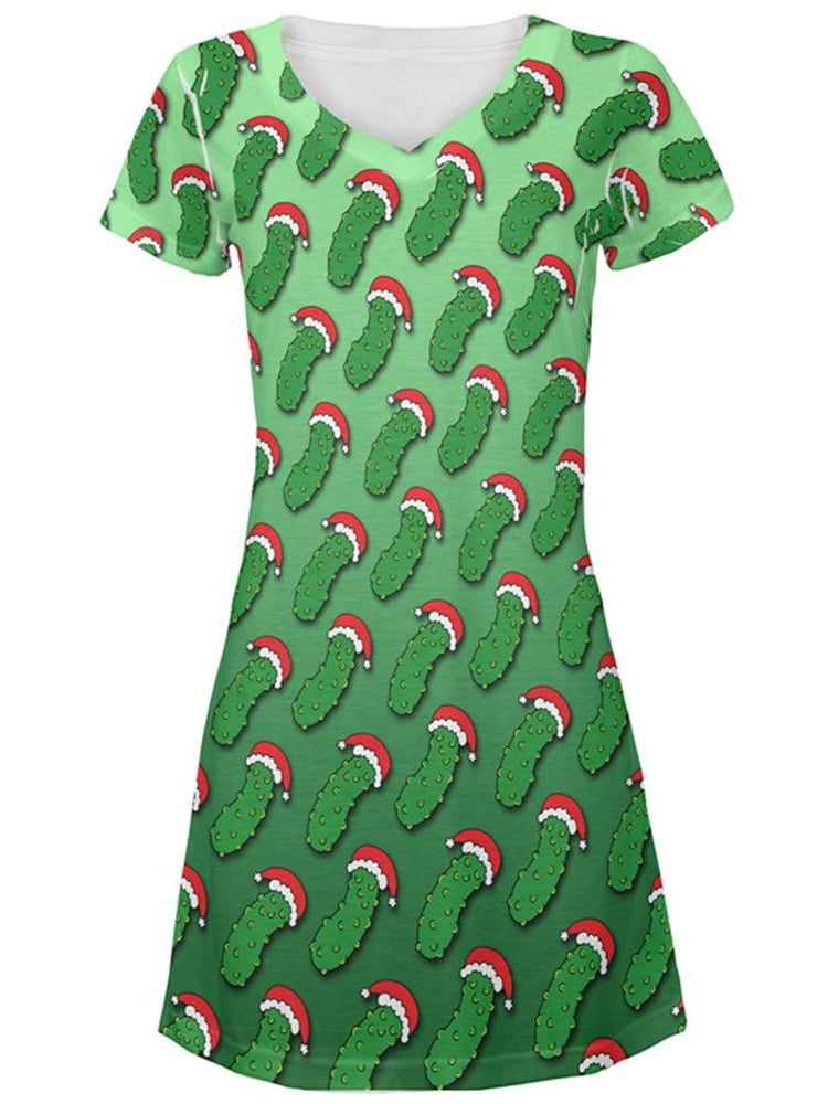 Christmas German Pickle Pattern All Over Juniors Beach Cover Up Dress Multi Sm Walmart Com